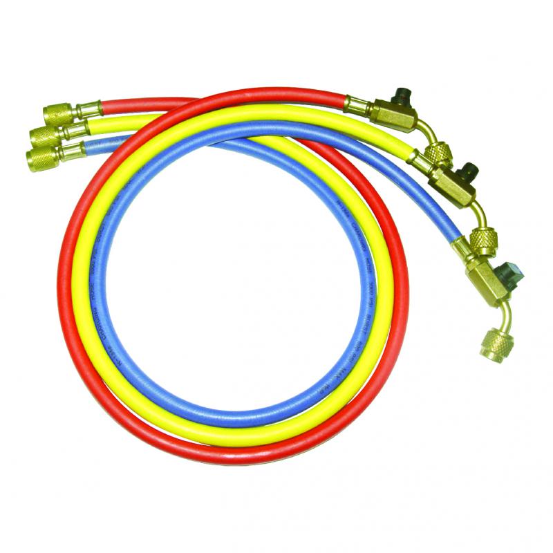 3 заправочных шланга(красный, желтый, синий) длинна 36"(90см),  Для хладогента R410, рабочее давление 800PSI